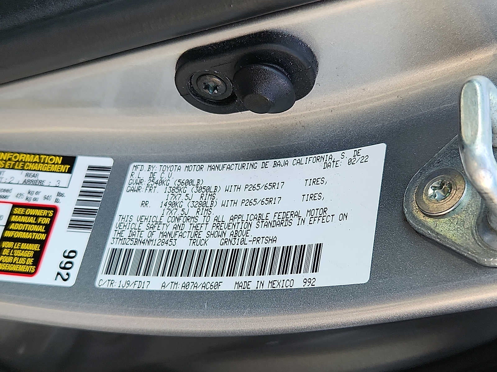 - Front Tire Size: P265/65SR17